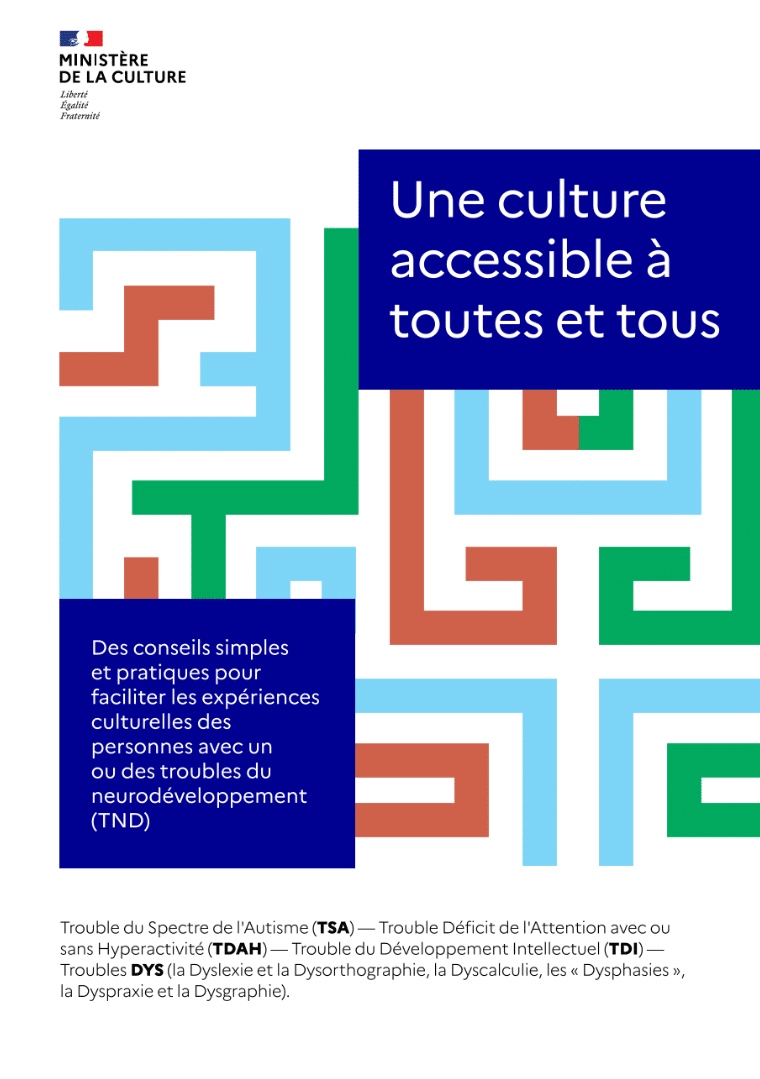 Le guide "Une culture accessible à toutes et tous" est le fruit d'une collaboration interministérielle entre le ministère de la Culture et la Délégation interministérielle à la stratégie nationale pour les troubles du neurodéveloppement (TND).